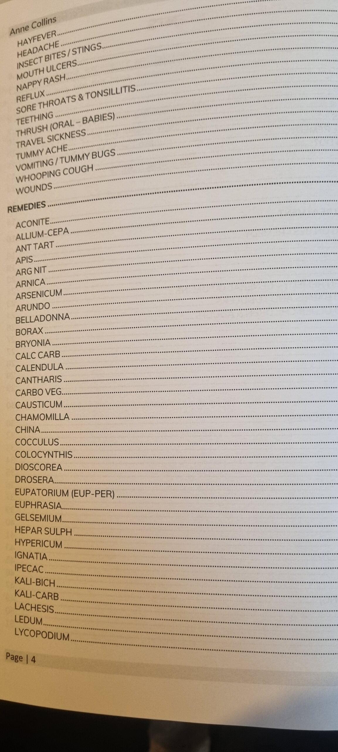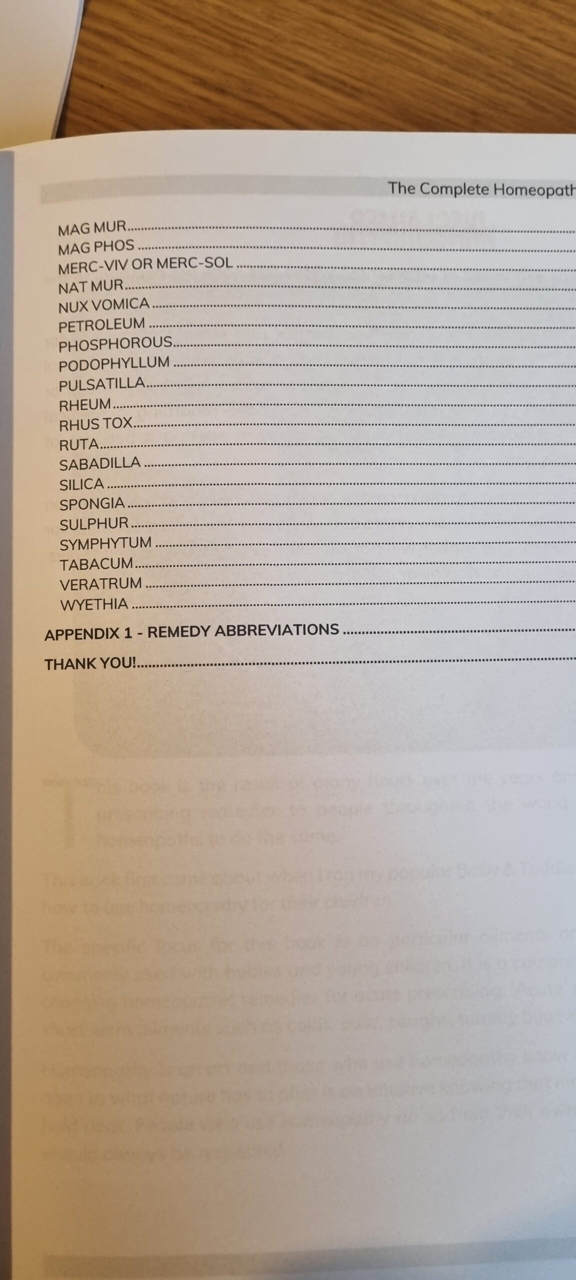 The main part of the book covers the most common everyday acute complaints, such as colic, teething, coughs, colds, sore throats, and much more, and the corresponding remedies. So you can see at a glance the top most commonly used remedies for each complaint.